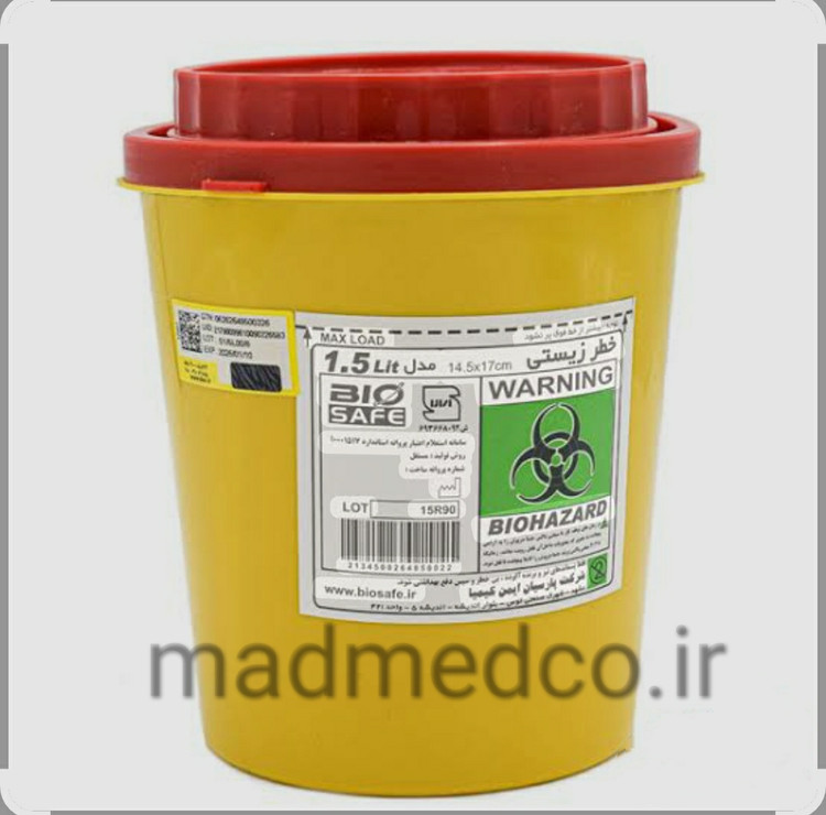 سیفتی باکس 1.5 لیتری درب قرمز سری c بیوسیف ظرف پسماند محدودیت سفارش 100 عددی