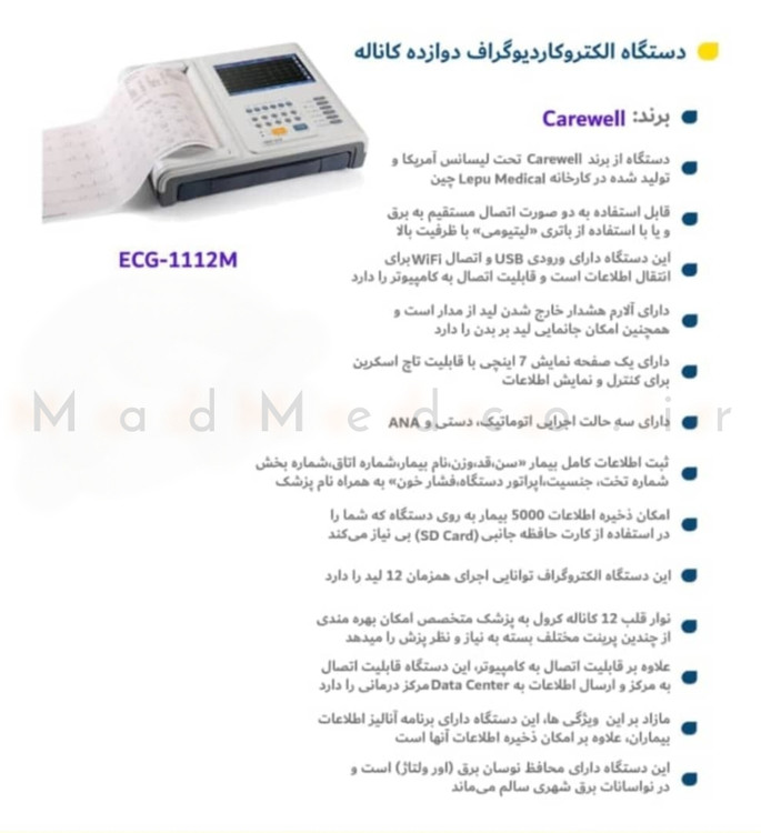 دستگاه نوار قلب carewell کرویل 12کانال مدل ECG-1112M آکبند تحت لیسانس آمریکا الکتروکاردیوگراف